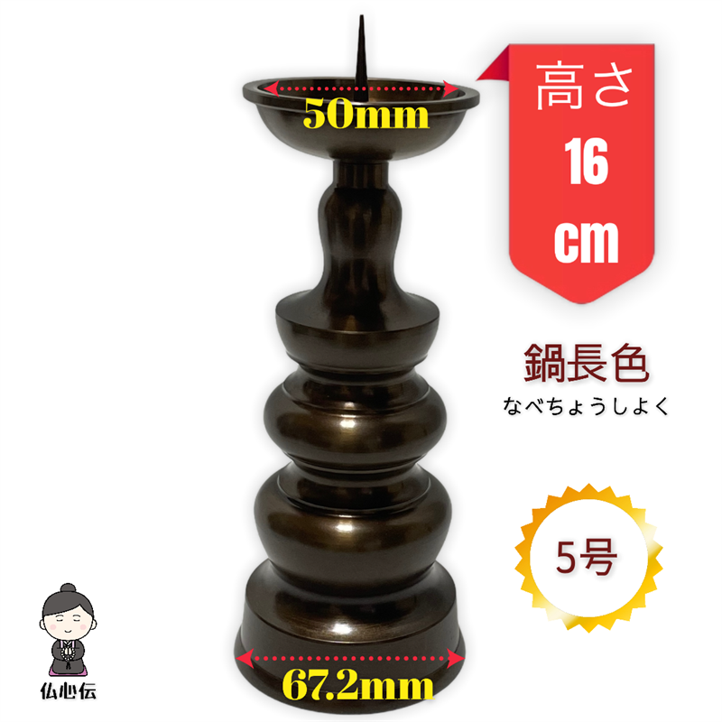 真鍮に人気の鍋長色で仕上げた商品です。当店で販売している「鍋長色商品」は全て同色となりますので「ローソク立て・香炉・花立」など同じ色で揃えることが出来ます。