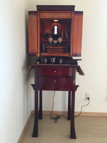 桐のお仏壇をお届け致しました 仏壇お届け情報 Twitter Facebook はてブ Pocket LINE コピー 2021.09.24商品検索 S様ありがとうございました。正面に蒔絵が施されいて和室洋室どちらにもマッチする綺麗なお仏壇です。下台には大きめの引き出しが二個付いていて四本足が特徴のお仏壇となります。クリックで拡大お届け仏壇全てが桐で出来ている鏡面仕上げの素敵なお仏壇です。お届け仏具右上段の観音菩薩を除く、お写真に写っているお位牌と仏具全品。氏名・お届け先住所など個人を特定できる情報は掲載を控えさせて頂いております