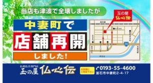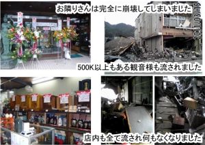 岩手県釜石市の中心商店街も殆どが津波で店舗崩壊してしまいました。当店も全壊し家財及び在庫を含めた商品を全て失いましたが復興に向け精一杯取組んでおります。(2017.06.10記載)